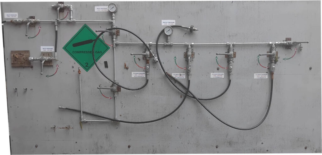 A pump with distribution board for filling cylinders with argon or argon mix, not oxygen.