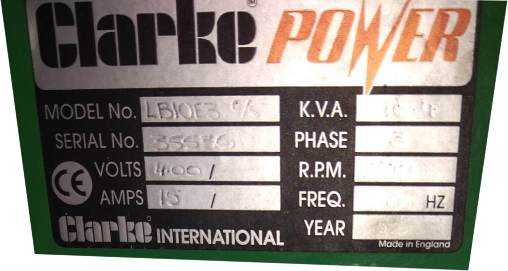 It has a Lombardini diesel engine and the unit was originally supplied by Clarke Internetional.