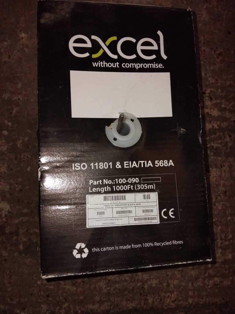This cat 5E cable was ordered for a customer but he never collected it and it's sat on the shelf for the past nine months.