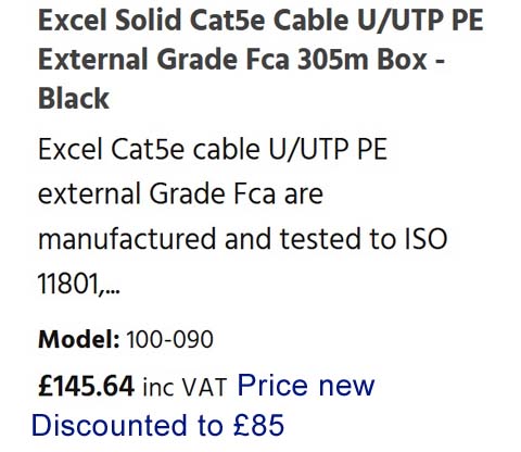 Excel Cat5e External Network Cable – U/UTP, 305m, Outdoor Use